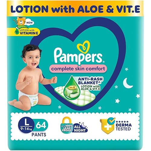 425221744 reviews for Pampers Complete Skin Comfort Pants, Anti-rash blanket, Lotion with Vitamin E & Aloe Vera, Large (L), 64 Count, 9-14kg