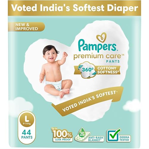 44557940 reviews for Pampers Premium Care Pant Style Baby Diapers | Large (L size) | 44 Count | Voted India’s Softest | All-in-1 with 360 Cottony Softness Diapers | 9-14kg