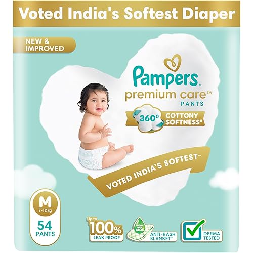 44557947 reviews for Pampers Premium Care Pant Style Baby Diapers | Medium (M size) | 54 Count | Voted India’s Softest | All-in-1 with 360 Cottony Softness Diapers | 7-12kg