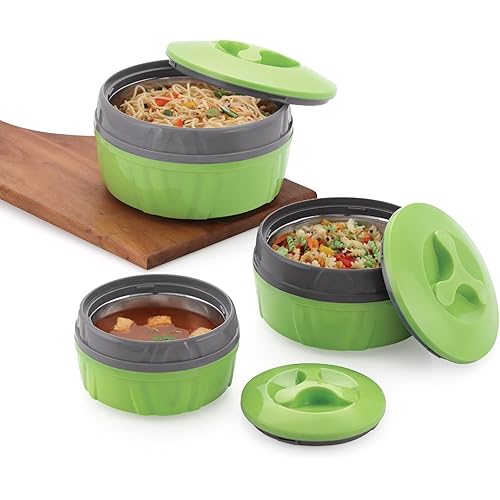 Paras Homeware Hot Chef Casserole| BPA Free | Food Grade | Easy to Carry | Easy to Store for Rice, Curry, Roti |Green – Set of 3 | 600ml, 1100ml 1800ml
