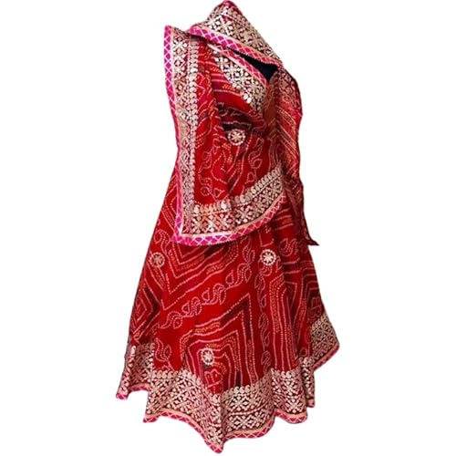 Parth Fashion Womens/Girls Traditional Bandhani Bandej Kota Doria Ready to Wear Lehenga & Dupatta With Unstitched Blouse