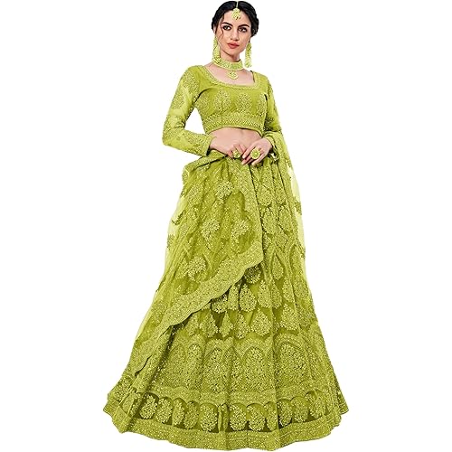 PATLANI Women Net Letest Design Chain Embroderied Work Woman S Flered Semi-Stitched Lehenga Choli.(Semi Stitched)