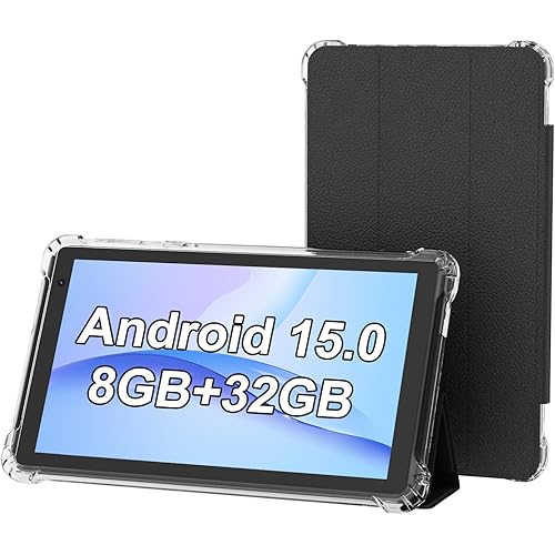 PEICHENG Tablet with Protective Case, 7 inch IPS 1024 * 600 Android 15.0 Tab PC RAM 8GB (3+5Expand)+ROM 32GB Bluetooth 5.0 WiFi6 2.4G+5G 2MP+5MP Dual Cameras (Black)