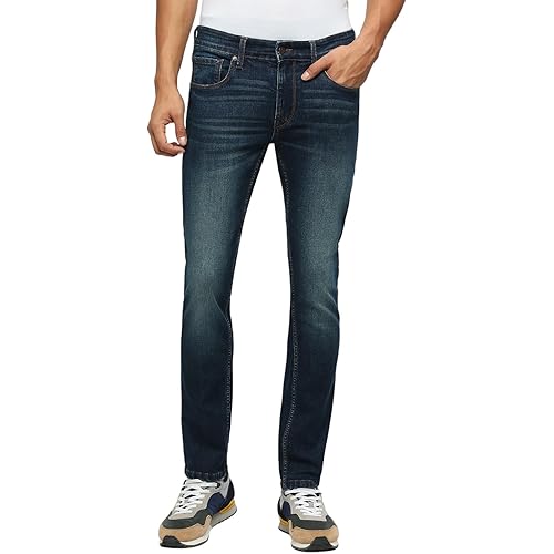 Tapered Fit Low Waist Jeans Greenish Shade Faded Look