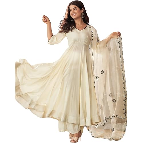1051 reviews for Perabin Women’s Anarkali Vichitra Silk Embroidered Kurta with Pant & Dupatta (Janvi)