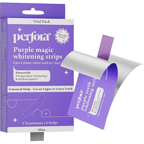 45536 reviews for Perfora Purple Teeth Whitening Strips – Pack of 3 Treatments (6 Strips) – Whitens Teeth in 1 Use | Peroxide & Sensitivity-Free, Enamel-Safe Oral Care | PAP & Hydroxyapatite For Stain Removal | Self-dissolving Strips