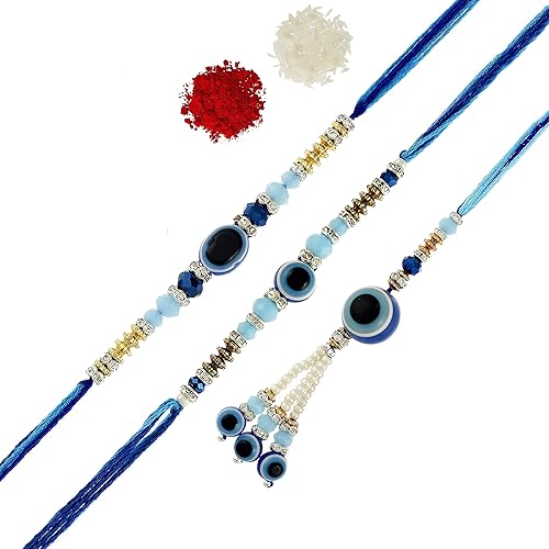 Perpetual Evil Eye Rakhi For Brother And Bhabhi Polyresin Eco Friendly Designer Bracelet Rakhi For Bhaiya Bhabhi and Kids Set Of 3