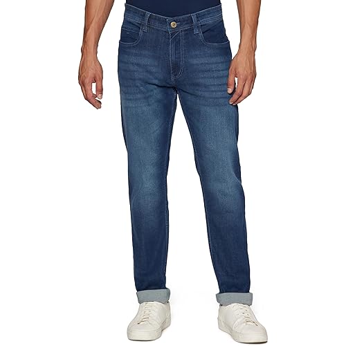 Peter England Men’s Tapered Fit Mid Rise Classic Tape Stretchable Twill Jeans