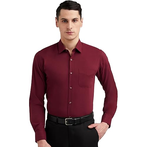 Peter England Men’s Everday Regular Fit Solid Shirt | Cotton Rich | 5-Pin Pocketing