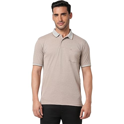 Peter England Men’s Premium Branded Regular Fit Half Sleeve Polo T-Shirt with Pocket | Cotton Rich | Birds Eye Interlock Weave