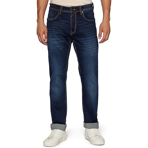 Peter England Men’s Tapered Fit Mid Rise Classic Tape Stretchable Twill Jeans