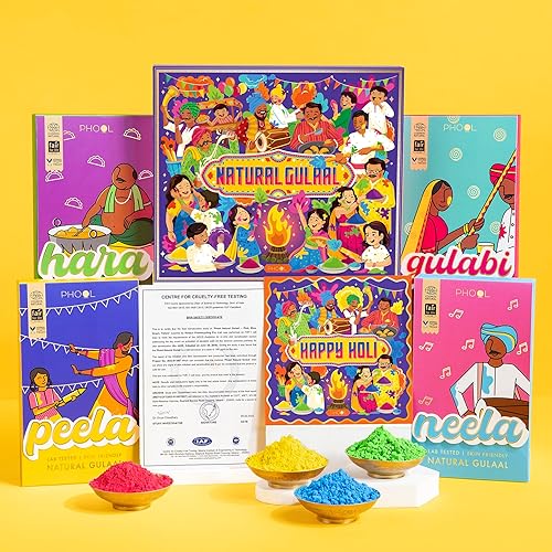 304 reviews for Phool Holi Gulal Colour -Pack of 4 Organic Holi Colours – 4X 100 (400) GMS Gulal Colours of Pink, Blue,Green, Yellow Certified Skin Safe Gulaal