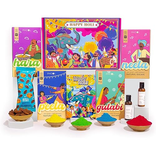 4 reviews for Phool Holi Gulal – Rang Panchami Box I Pack of 6 I 600 GMS Colours, Nutty Almonds, Kimirica – Set of 2 I Skin Friendly & Certified GulalI
