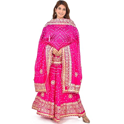 PK HUB Women’s Rajasthani Traditional Bhandej Hand Gota Patti Work Lehnga Chunni Set