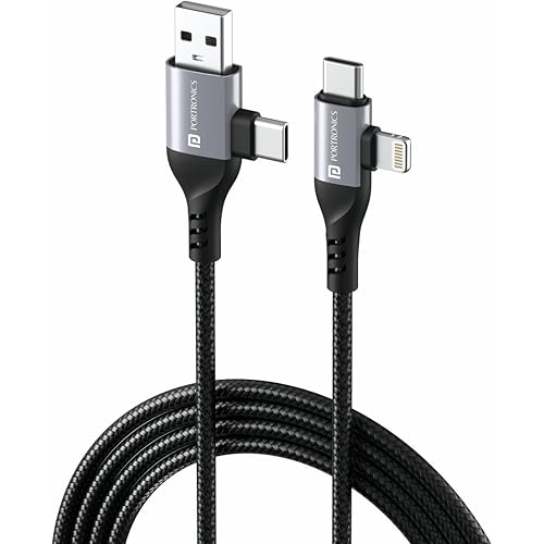 332 reviews for Portronics Konnect 4 IN 1 Unbreakable Nylon Braided Multi Functional Fast Charging Cable with Fast Data Transfer,Compatible with All Type C Android Smartphone & Lighting Device etc.(Black)