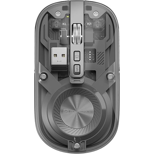 Portronics Toad 8 Transparent Wireless Bluetooth Mouse with Dual Wireless (BT + 2.4 GHz), Rechargeable Battery, Noise-Free Clicking, Show/Hide Desktop, Multi-Device Pair, Adjust Sensitivity (Grey)