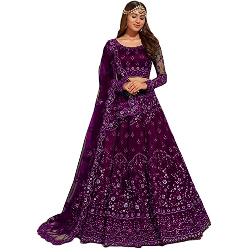 PREHANA FASHION Women’s Soft Net/Satin Embroidery Semi Stitched Lehenga Choli