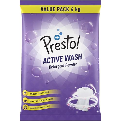 11282 reviews for Amazon Brand – Presto! Active Wash Detergent Powder 4 kg |Tough on Stains | Gentle on Fabrics | Colour-Safe | Refreshing Fragrance | Machine and Hand Wash