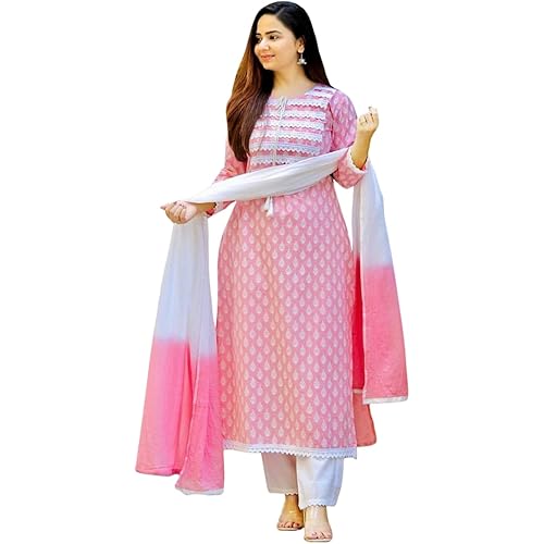 Primvo Women Kurta Pant Set with Dupatta | Ethnic Set Straight Kurta For Girls | Designer Suit | Kurta Set | Women Wear | Suit Set