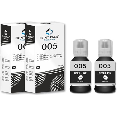 Print Page 005 120ml Refill Ink Bottle Compatible for Printers M1100, M1120, M1140, M1170, M1180, M2140, M2170, M3140, M3170, M3180 (Black – 2 pcs)
