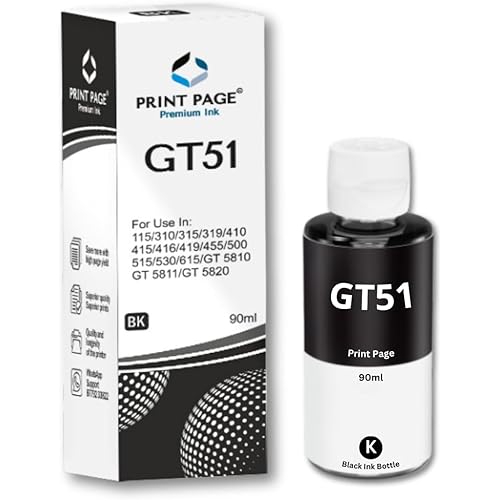 Print Page GT51 Refill Ink Bottle Compatible for Ink Tank Printers 115, 310, 315, 319, 410, 415, 416, 419, 455, 500, 515, 530, 615, GT 5810, GT 5811, GT 5820 (Black 90ml – 1 pcs)