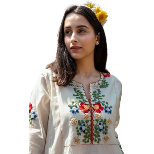 PRITH V Womens White Color beautiful Straight Kurta With Pant(Cotton)