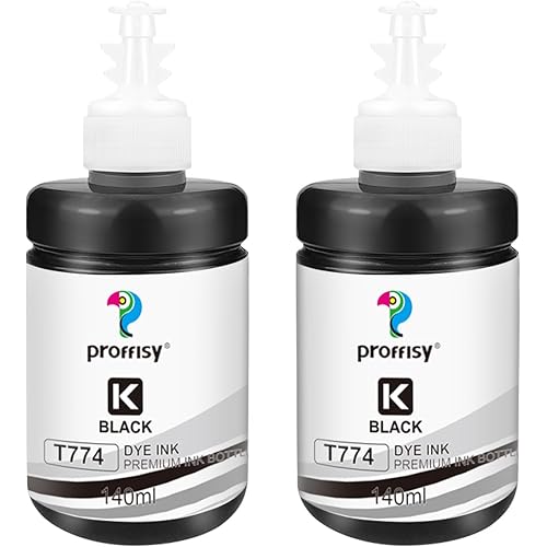 proffisy Ink Refill dye Ink for Epson T7741 T774 Black Ink Bottle, Compatible for M200, L1455, M105, M205, M100, ET-3600, 16500, L606, L655, L656(T774 Black-2PCS)