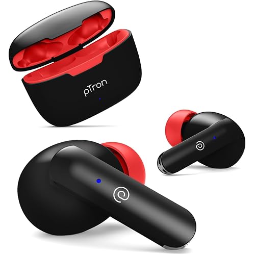 751 reviews for pTron Bassbuds Duo In-Ear Wireless Earbuds, Immersive Sound, 32H Playtime, Clear Calls TWS Earbuds, Bluetooth V5.1 Headphone, Type-C Fast Charging,Voice Assist & IPX4 Water Resistant (Jet Black & Red)