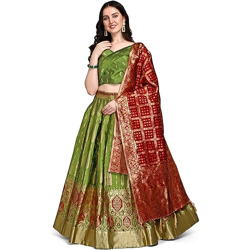 PURVAJA Women’s Faux Silk Jacquard Semi-Stitched Embroidered Fabric Lehenga Choli