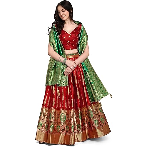 PURVAJA Women’s Faux Silk Semi-Stitched Lehenga Choli