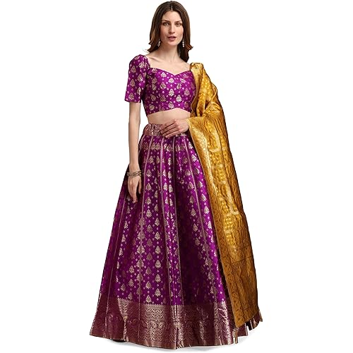 PURVAJA Women’s Jacquard Semi-Stitched Lehenga choli (Trisha)