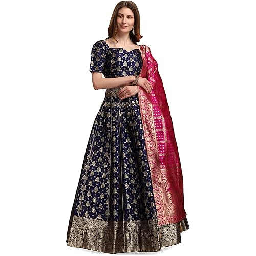 PURVAJA Women’s Jacquard Semi-Stitched Lehenga choli (Trisha)
