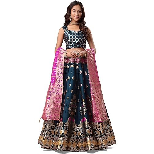 24 reviews for PURVAJA Women’s Jacquard Semi-Stitched Lehenga choli(Indra)