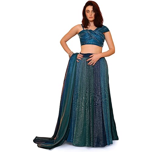 PURVAJA Women’s Shaded Lycra Semi-Stitched Lehenga choli (Liya)