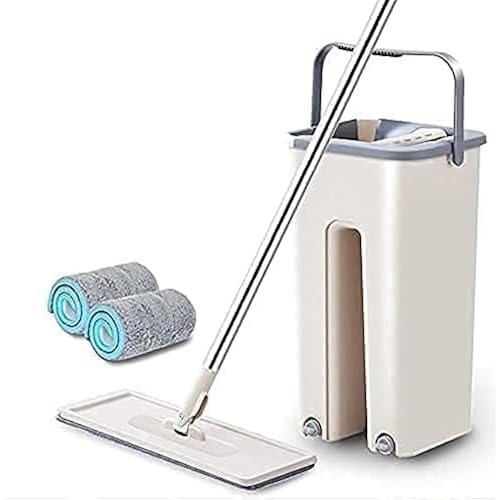QWEBARS Heavy Quality Floor Mop with Bucket, Flexible Kitchen tap Flat Squeeze Mop Bucket System Cleaning Supplies 360 Flexible Mop Head/ 2 Reusable Pads Clean