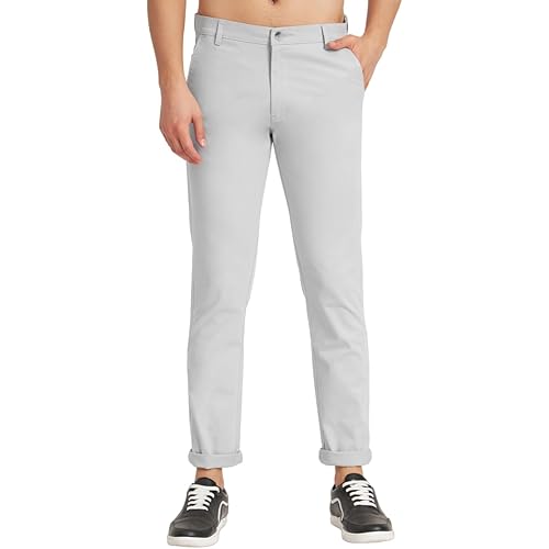 Cotton stretch fabric for ease of movement Pair with solid polos or casual shirts and sneakers for a stylish casual look. Style: Casual Trousers ;Pattern: Solid Zip fly with button closure Solid pattern