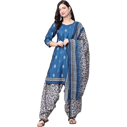 Fabric : Top – Cotton Blend, Bottom – Cotton Blend, Dupatta -Cotton Blend Color : Top -Blue, Bottom – Blue & White, Dupatta – Blue & White Top Length : 39 Inches / Knee Length || Bottom Length : 39 Inches || Bust Size : 42 Inches || Waist Size : 38 I… read more