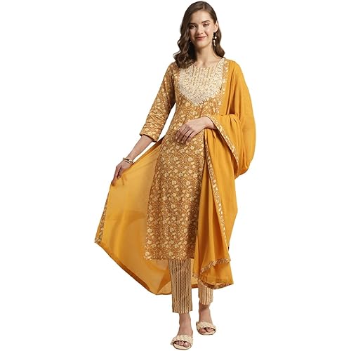 13 reviews for rangita Cotton Embroidered Straight Kurta with Pant and Dupatta | Kurta Set for Women