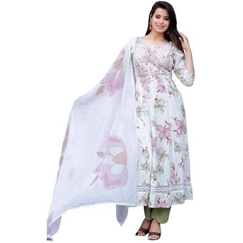 648 reviews for Rangnavi Women Rayon Anarkali Embroidered Printed Kurta Pant And Dupatta Set