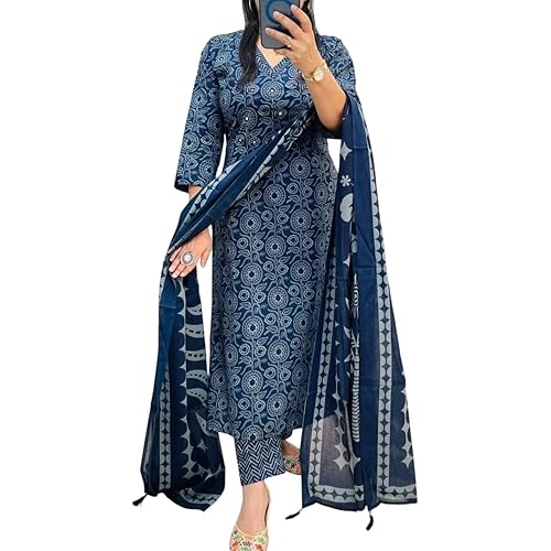 385141 reviews for Rangnavi Women’s Pure Cotton Printed Straight Kurta with Pants and Dupatta Set | Ethnic Set | Suit Set | Kurta Set