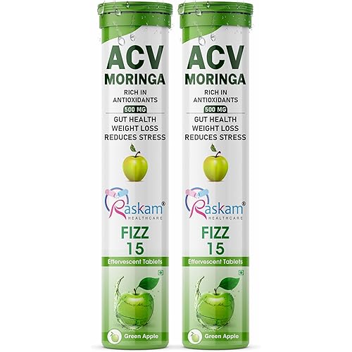 18 reviews for Raskam ACV Moringa 15 Fizz Effervescent Tablets | Green Apple Flavor, 500mg, | Boost Energy & Immunity Naturally with Antioxidants | Controls Cravings (2 Packs of 15 Tablets Each)