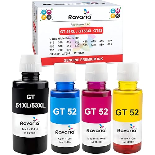- Experience reliable performance and exceptional quality with Ravaria’s GT 51XL/53XL and GT52 refill ink. Achieve sharp, clear text perfect for both office and home daily printing needs.