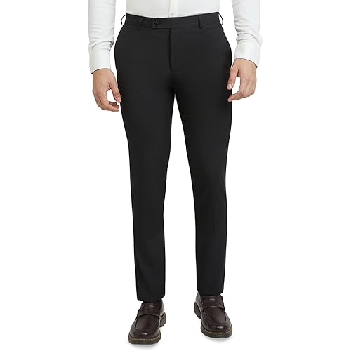 Raymond Men Slim Fit Solid Pattern Poly Viscose Blend Flat Front Formal Trouser