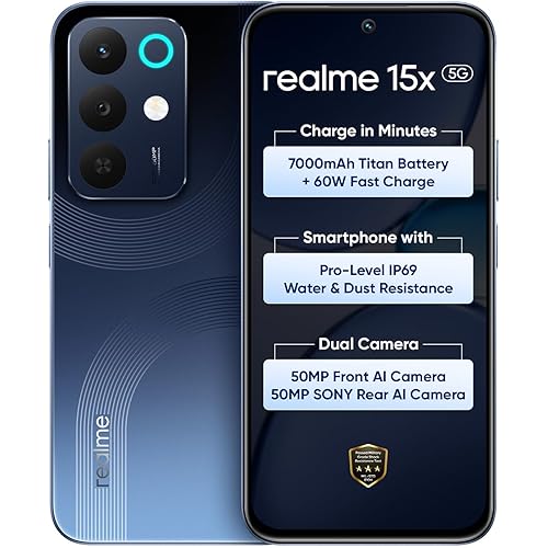 435162 reviews for realme 15X 5G Smartphone 8+256GB Marine Blue, 6.8-inch Screen, 144Hz Display,7000mAh Battery, 60W Fast Charging, 50+50MP AI Camera,Dimensity 6300 6nm Octa-core chipset Processor, IP69
