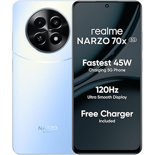 4539 reviews for realme NARZO 70x 5G (Ice Blue, 8GB RAM,128GB Storage)|120Hz Ultra Smooth Display|Dimensity 6100+ 6nm 5G|50MP AI Camera|45W Charger in The Box
