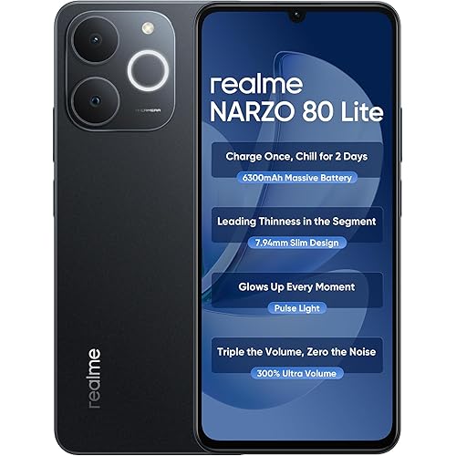 4251744 reviews for realme NARZO 80 Lite 4G (Obsidian Black, 6GB+128GB) | 6300mAh Segment’s Biggest Battery | 7.94mm Slim Design | 300% Ultra Volume | Pulse Light: 9 Colors, 5 Glow Modes | Ai Assist