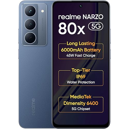 4252305 reviews for realme NARZO 80x 5G (Midnight Blue, 6GB+128GB) | Dimensity 6400 5G Chipset | 6000mAh Long-Lasting Battery | 45W Fast Charge | 120Hz Eye Comfort Display | IP69 Top-Tier Waterproof