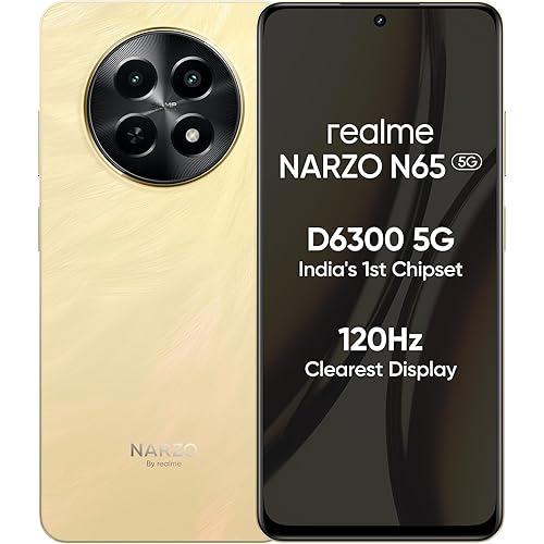 realme NARZO N65 5G (Amber Gold 6GB RAM, 128GB Storage) India’s 1st D6300 5G Chipset | Ultra Slim Design | 120Hz Eye Comfort Display | 50MP AI Camera| Charger in The Box