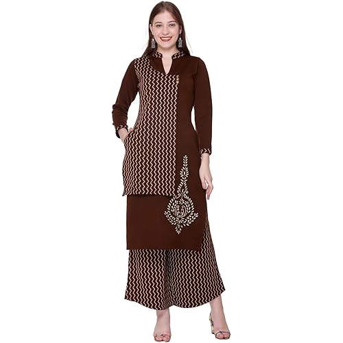 REBECCA Women’s Warm Woolen Winter Wear Jacquard Kurta with Palazzo Set of 2pc