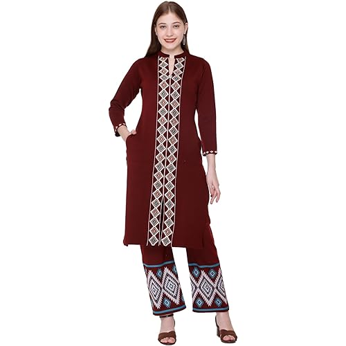 REBECCA Women’s Warm Woolen Winter Wear Jacquard Kurta with Palazzo Set of 2pc
